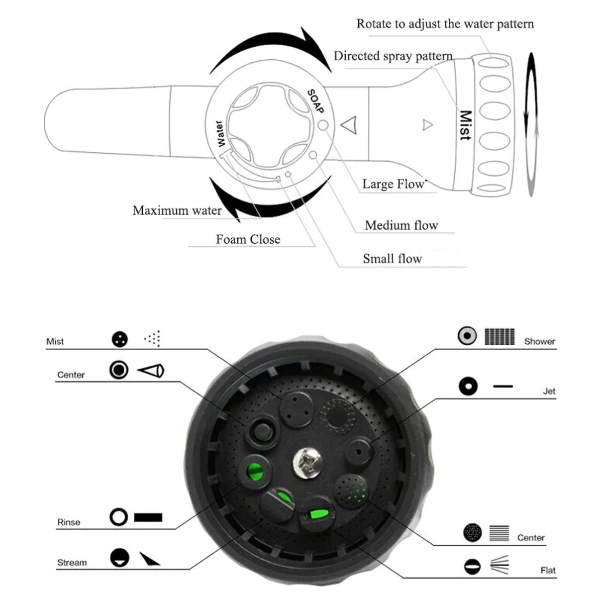 πΉ High-Pressure Industrial Design: The car wash hose nozzle has 8 spray patterns and a built-in soap dispenser. New design technology concentrates water pressure to one point, with a spray distance of 6-10 meters! π